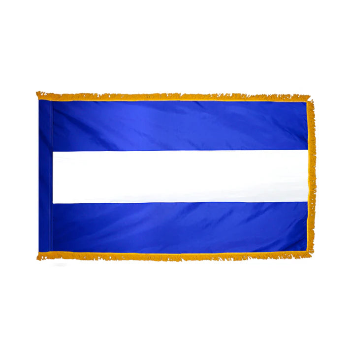 Indoor & Parade Flags: Available in sizes 3’x5' and 4’x6’. Manufactured with 100% Nylon and are lined with golden rayon fringe. The flannel lined pole hem will fit on flag poles up to 1 ¼” in diameter. Pole hem sewn tabs allow a secure attachment to the flagpole. Display a 3’x5’ flag on an 8’ pole and a 4’x6’ flag on a 9’ pole.